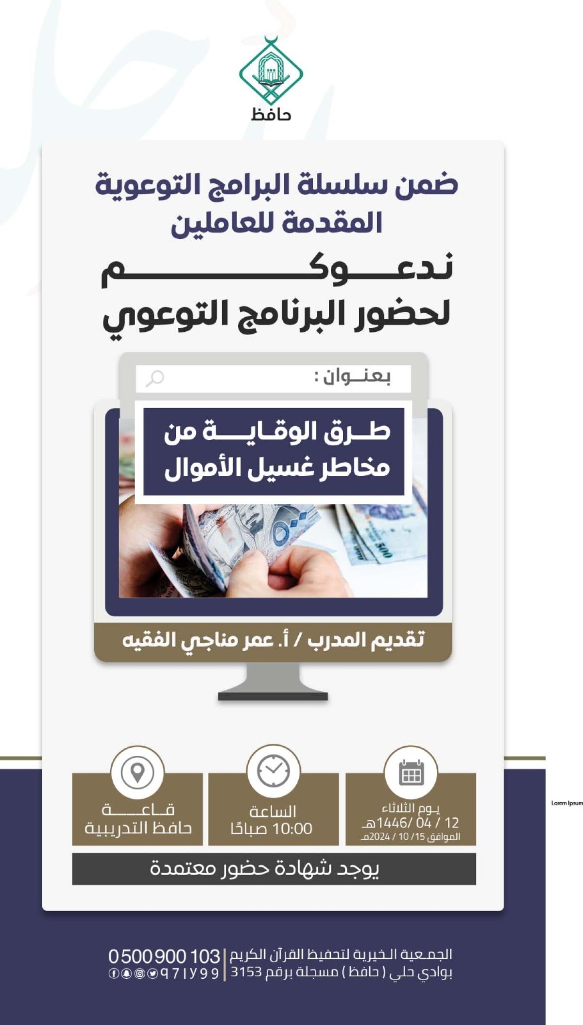 دورات وبرامج توعوية في الوقاية من غسيل الأموال ..